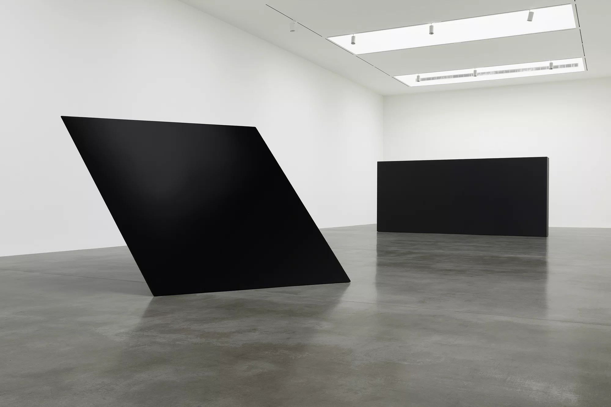 The material itself—powder-coated steel mesh—achieves what Anne Truitt pursued through industrial fabrication: a surface so consistent it appears to erase the hand entirely. The black finish absorbs light rather than reflecting it, flattening the object towards silhouette whilst the mesh texture introduces a paradoxical depth. Viewed obliquely, the perforations create moiré interference patterns, optical vibrations that recall Bridget Riley's investigation of perceptual instability.
