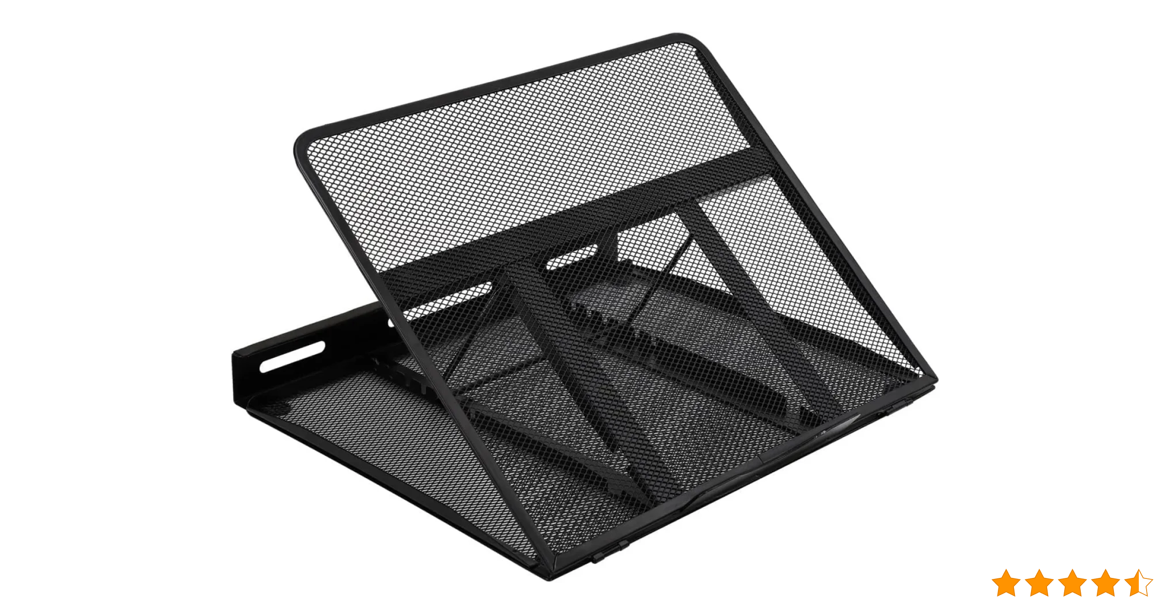 Ventilated Adjustable Ergonomic Laptop Stand announces its formal programme through systematic perforation. A black mesh plane—elevated, angled, and subdivided—establishes a field condition in which figure and ground collapse into a single material fact. This is not decorative fenestration but structural logic made visible: the perforations simultaneously reduce mass, permit flow, and create an optical phenomenon where solid and void achieve equivalence.