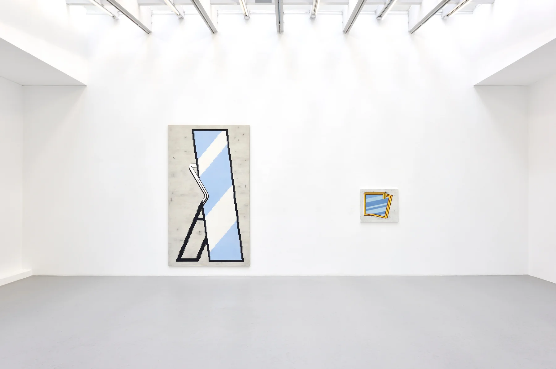 This border performs the same operation Anne Neukamp identifies in her mirror paintings: it brackets a field that should generate optical phenomena while simultaneously asserting its own material facticity as edge. Where Neukamp paints pictograms of mirrors containing abstraction where reflection should be, the Amazon mirror inverts this—a functional reflective surface bounded by a frame so reduced it approaches pictogrammatic sign. The black perimeter doesn't ornament the reflective surface but defines the threshold between material object and optical phenomenon.